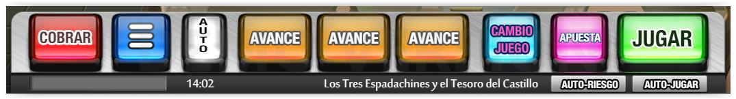 Jugar: Empezar la partida, jugar avances, jugar a Doble o Bonos o acelerar los cobros.