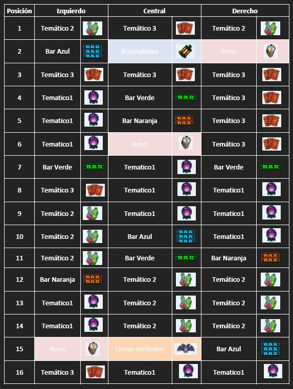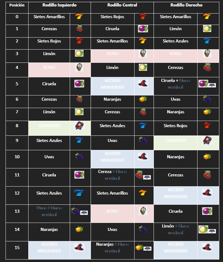 Ciertas figuras del rodillo tienen asociado un símbolo de líneas verticales (ver imagen abajo el símbolo). En caso de obtener este símbolo en cualquier rodillo incrementará el contador de líneas verticales (hasta un máximo de 9)