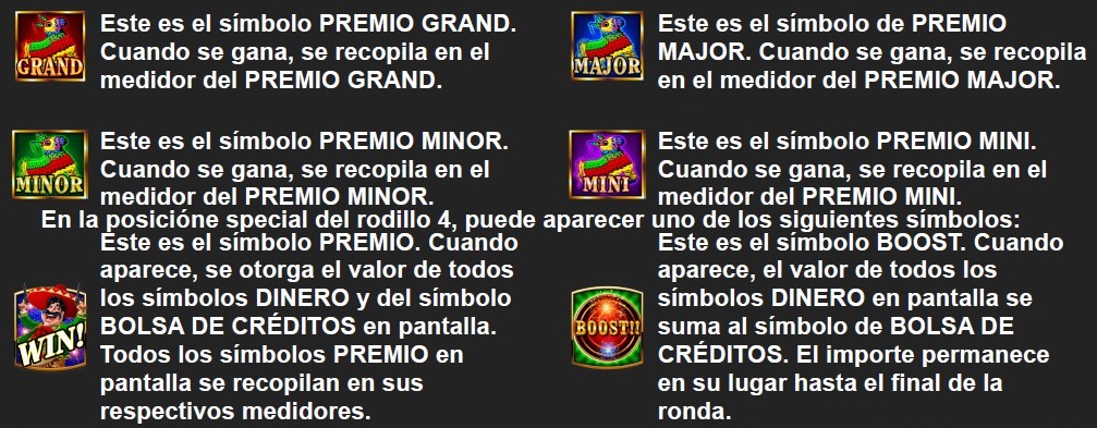 MAJOR - Premia con un valor de 250x la apuesta total. Para ganarlo, recopile 5 símbolos MAJOR durante la función respin.