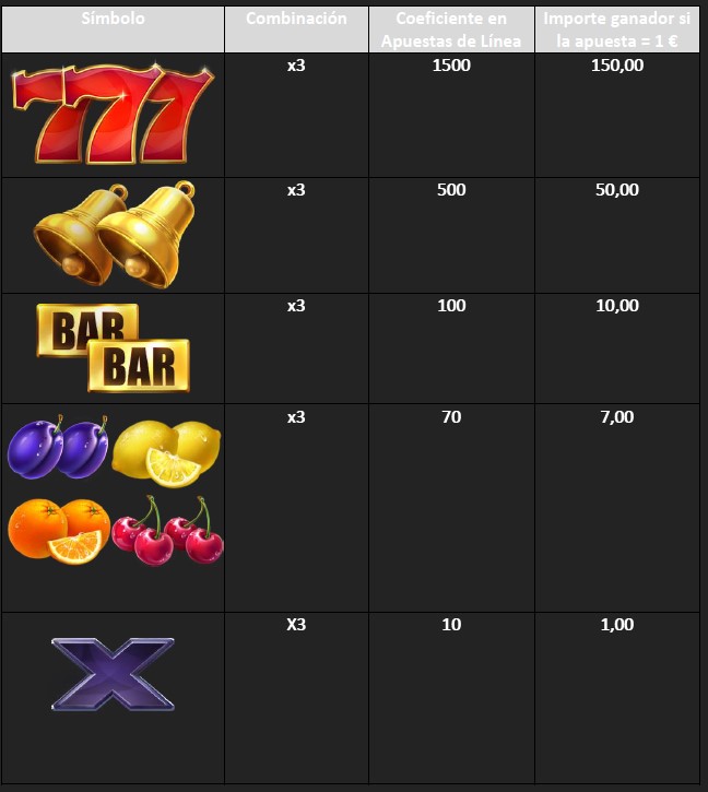 ? Las combinaciones ganadoras y los pagos se conceden según la Tabla de Pagos.