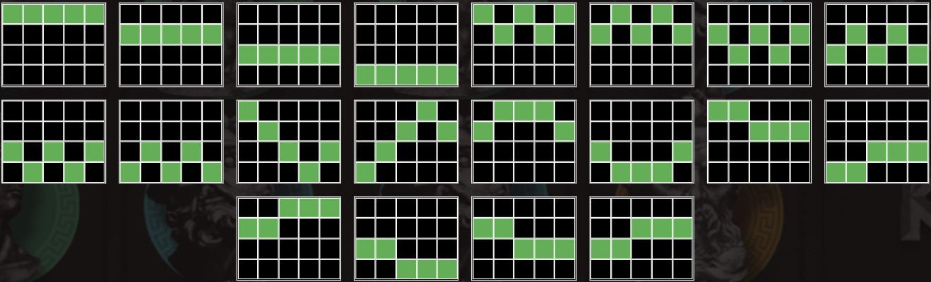 Ganarás si el mismo símbolo o un WILD aparece en una de las siguientes líneas de premio predefinidas de izquierda a derecha, comenzando con el carrete de más a la izquierda. Consulta la tabla de premios para ver el número de cada uno de los símbolos que necesitas para ganar.