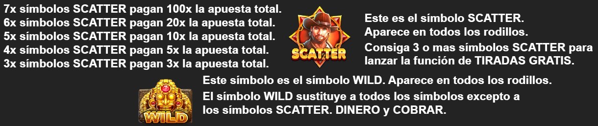 Consiga 3 o más símbolos SCATTER en cualquier posición de la pantalla para originar la función de TIRADAS GRATIS.