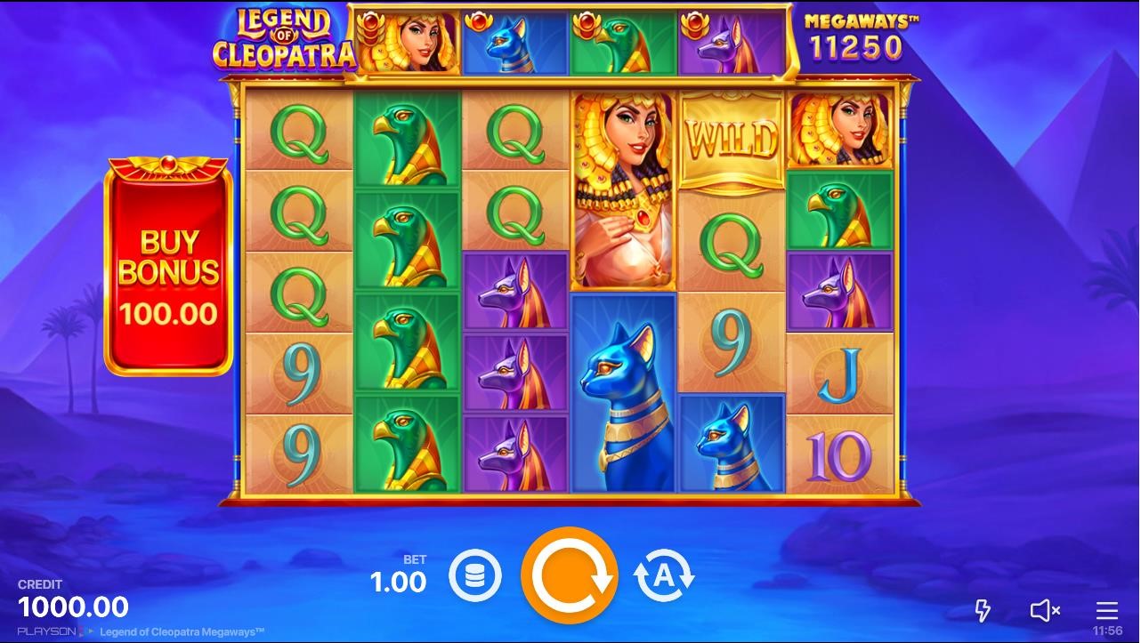 Playson se complace en presentar la mecánica Megaways™ en nuestra gama de juegos. No puede haber un mejor candidato para esta innovación que nuestro famoso y aclamado título «Legend of Cleopatra». Esta versión del juego de tragaperras realmente lo tiene todo: de 324 a 200 704 formas o Megaways™ de ganar; símbolo de Wild; Fila Superior de Bonus; Multiplicador de ganancias de ronda; modo de Bonus de Jugadas Gratis y la posibilidad de comprarlo por un número fijo de apuestas con la función Comprar Bonus. Todo lo anterior se mejora con la mecánica de símbolos Colapsantes.