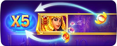 Las Insignias de Escarabajo solo aparecen en los símbolos de la Fila Superior de Bonus. Cada uno de estos símbolos puede tener hasta 3 Insignias de Escarabajo. Cada Insignia de Escarabajo en un símbolo colapsado incrementa en 1 el Multiplicador de Escarabajos. El Multiplicador de Escarabajos se aplica en los próximos pagos de la jugada actual. El valor del Multiplicador de Escarabajos se restablece al x1 inicial después de cada jugada en el Juego Principal.