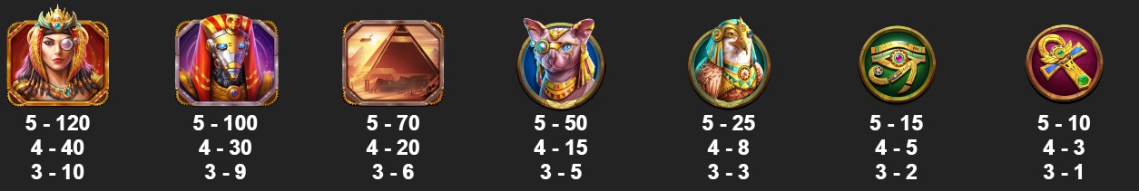 Todos los símbolos pagan de izquierda a derecha en rodillos adyacentes, comenzando desde cualquier rodillo.