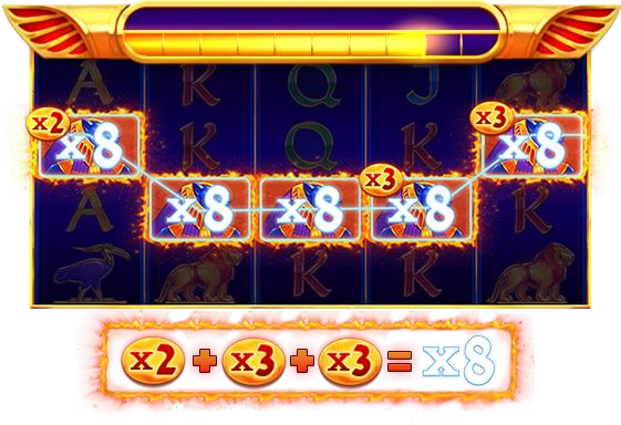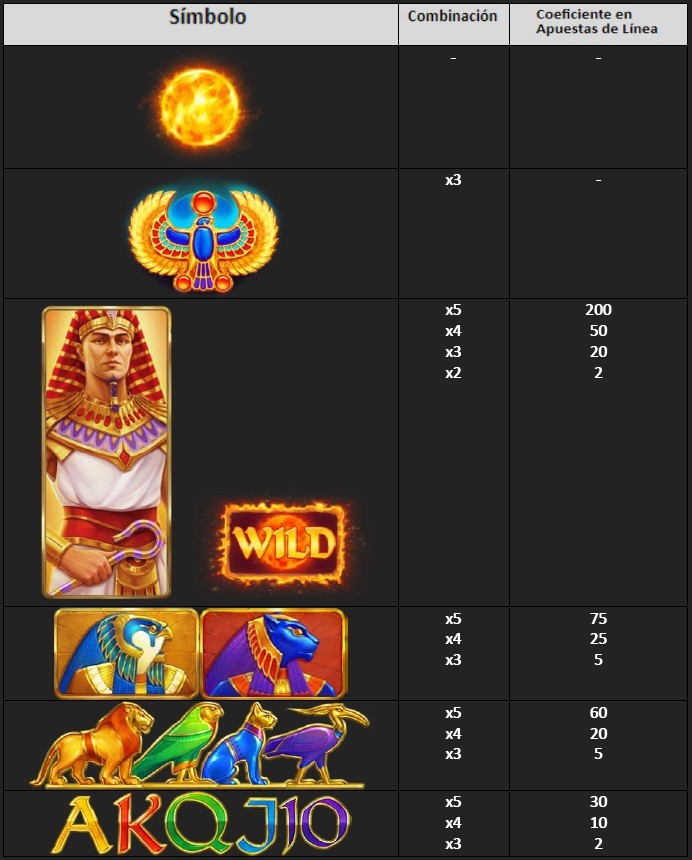 Las riquezas reales caen sobre el jugador mediante una acumulación progresiva de todos los Multiplicadores de Ganancias de línea y símbolos de Wild. Cada vez que el Símbolo de Sol aparece en la zona de juego durante el Juego Principal, se activa el Marco Ardiente que se transforma en Wild al final de un ciclo de 10 jugadas. En las Jugadas Gratis, los símbolos de Wild son más accesibles, ya que permanecen en los rodillos durante todo el modo.