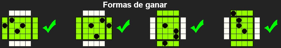 Los premios son obtenidos mediante las combinaciones de símbolos adyacentes de izquierda a derecha, de derecha a izquierda, de arriba abajo y de abajo arriba.